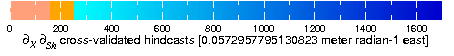 - 0.0572957795130823 meter radian-1 east